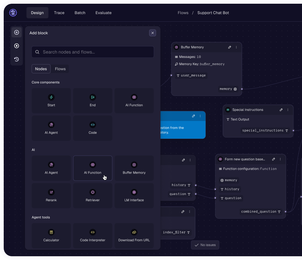 Build intelligent workflows and agents without coding expertise, automating routine tasks and creating specialized AI solutions tailored to your unique challenges.